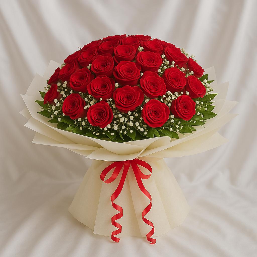A bright and cheerful bouquet combining vibrant yellow lilies and soft pink lilies, wrapped beautifully in sunny yellow paper and finished with a pink ribbon.
